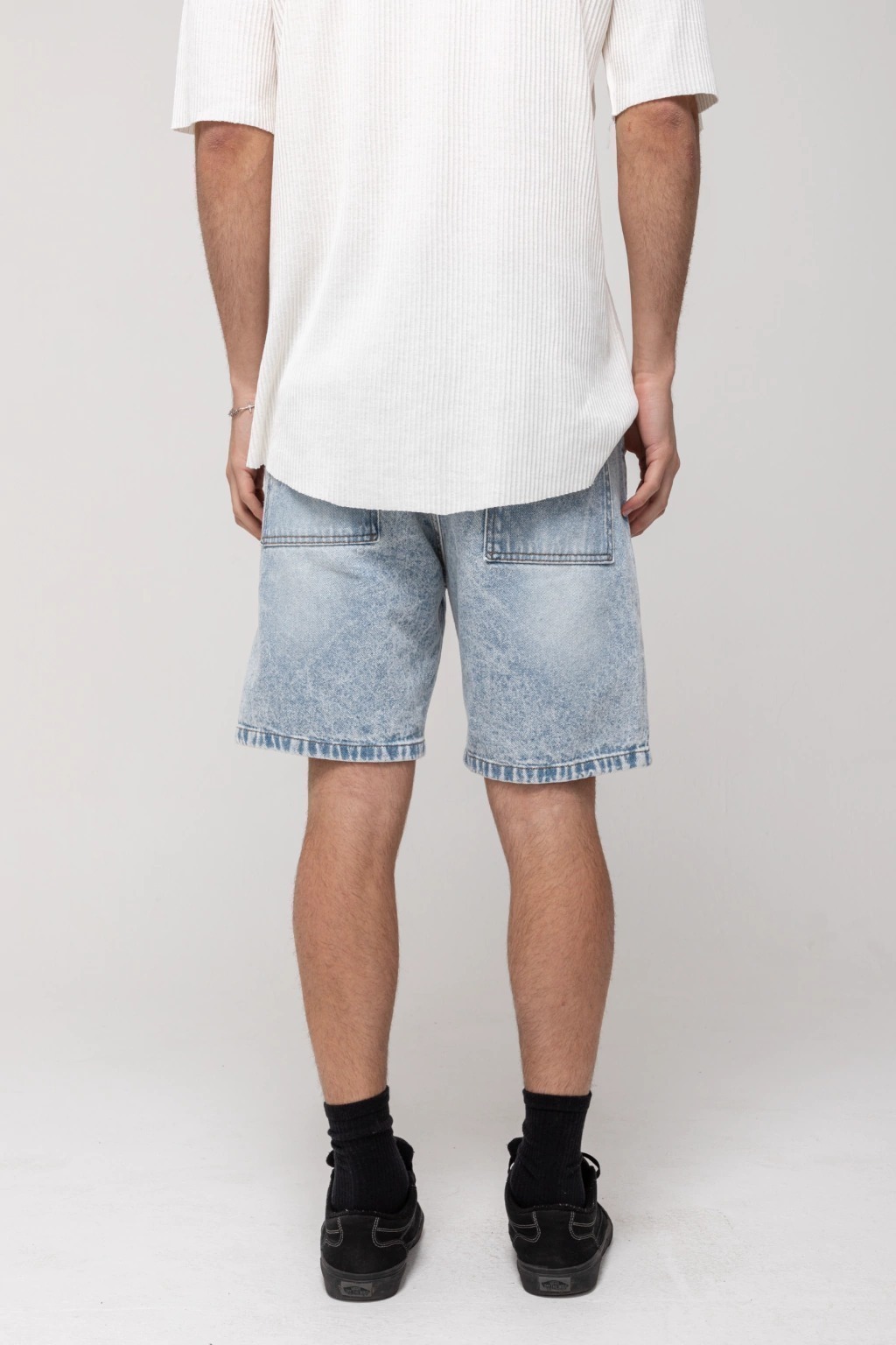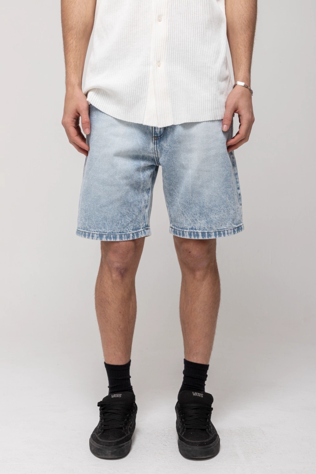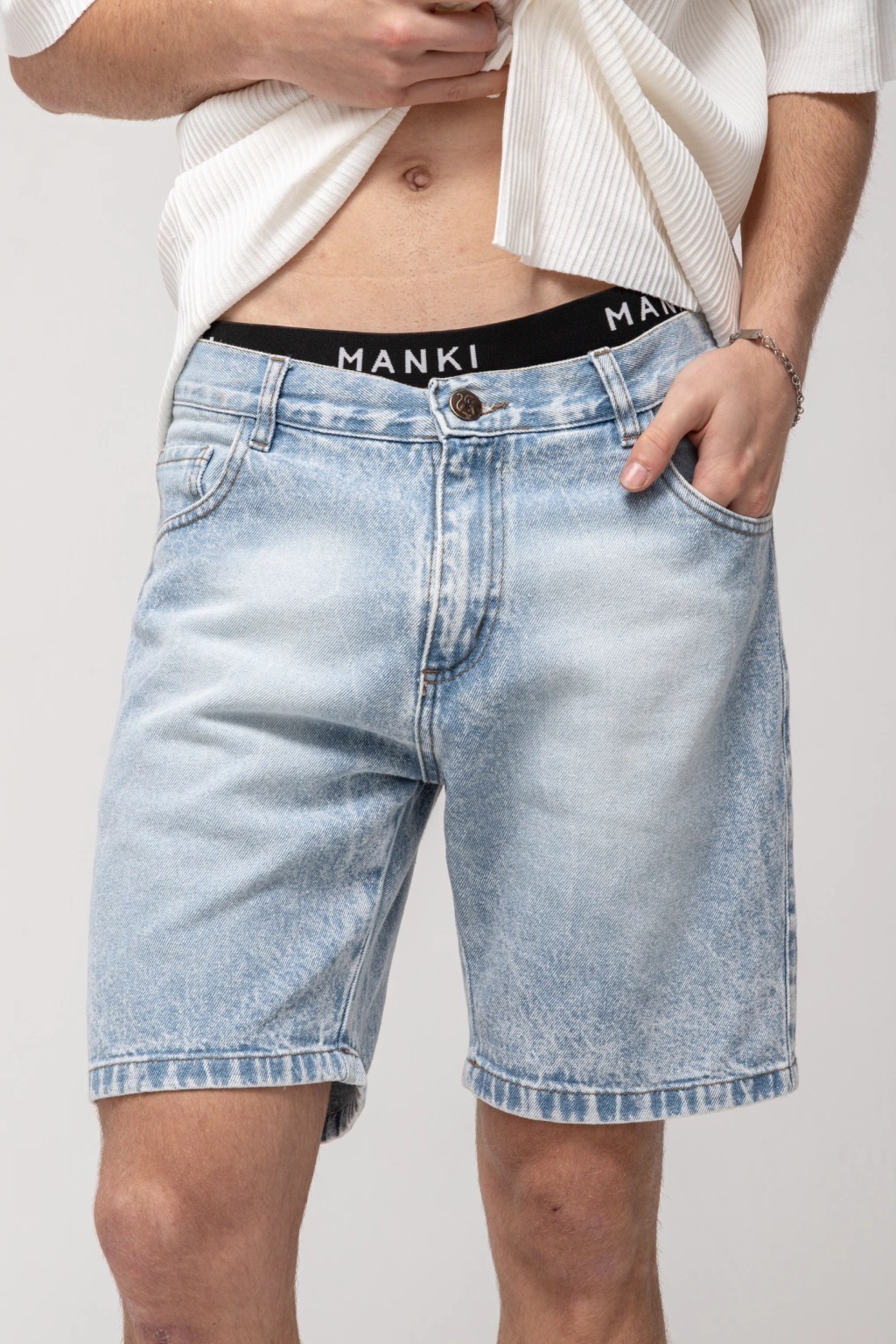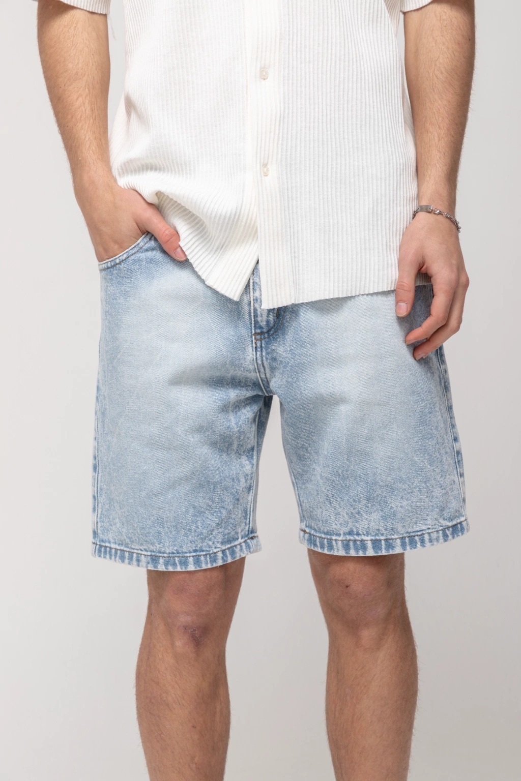 Bermuda de denim con calce regular, cuenta con bolsillos tanto en el delantero como la espalda, cartera con cierre metálico, y un deshilachado sutil en botamangas. Se le realizó un proceso laser
