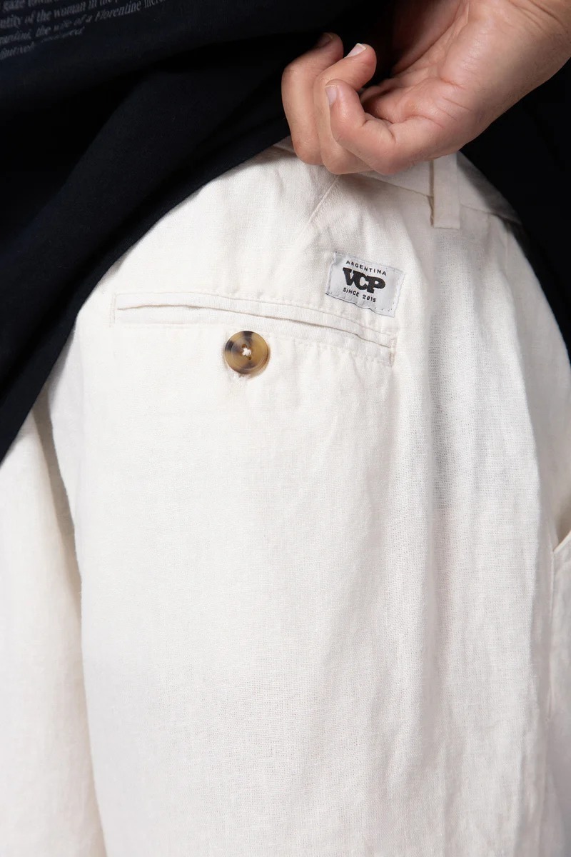 Bermuda de lino con bolsillos en delantero y ojal en trasero. Calce regular. Rayon + Lino