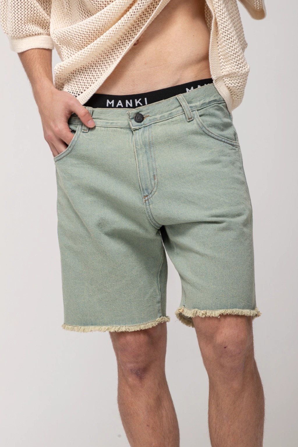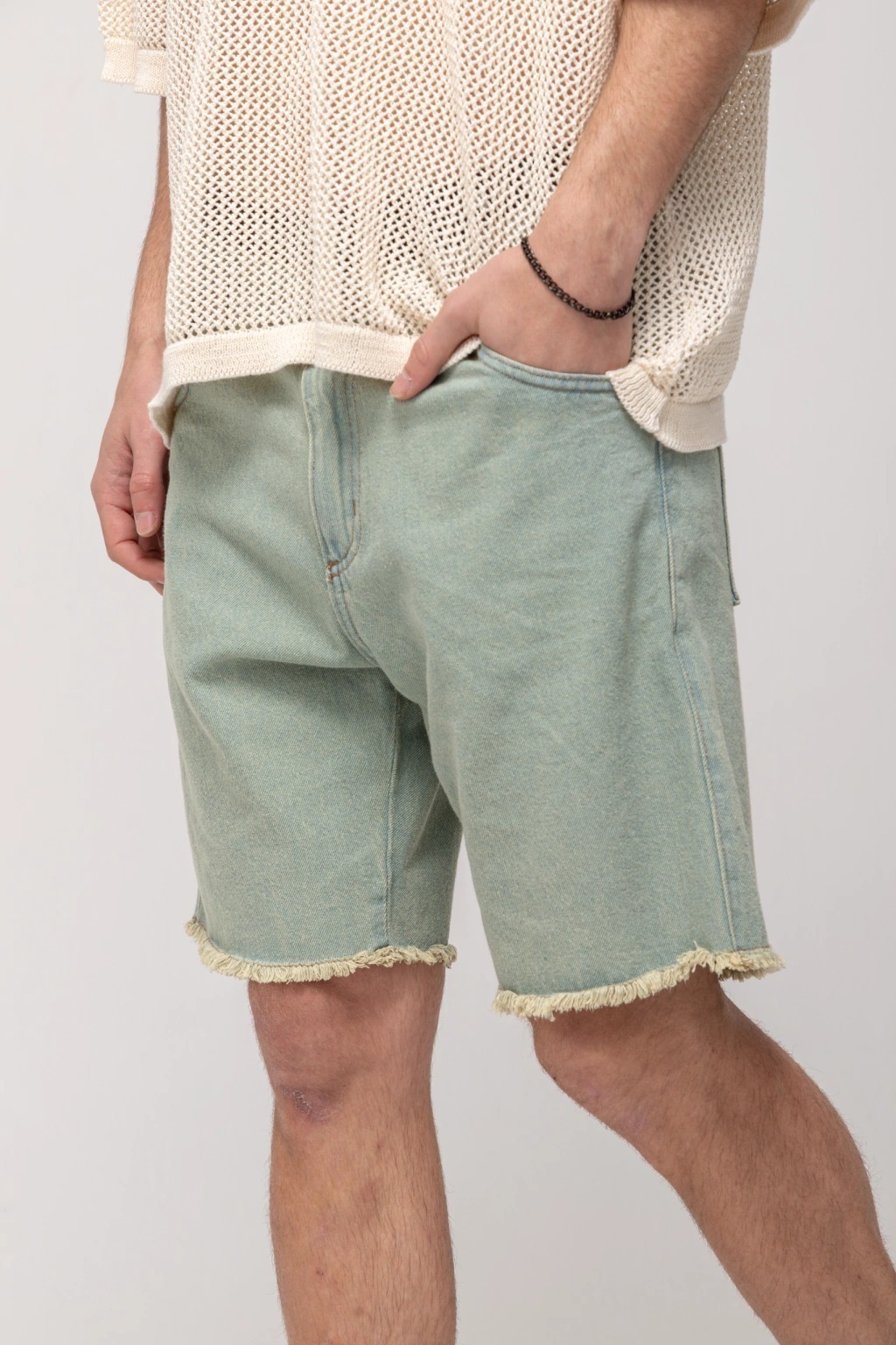 Bermuda de denim con calce regular, cuenta con bolsillos tanto en el delantero como la espalda, cartera con cierre metálico, y un deshilachado sutil en botamangas. Se le realizó un proceso de teñido y laser