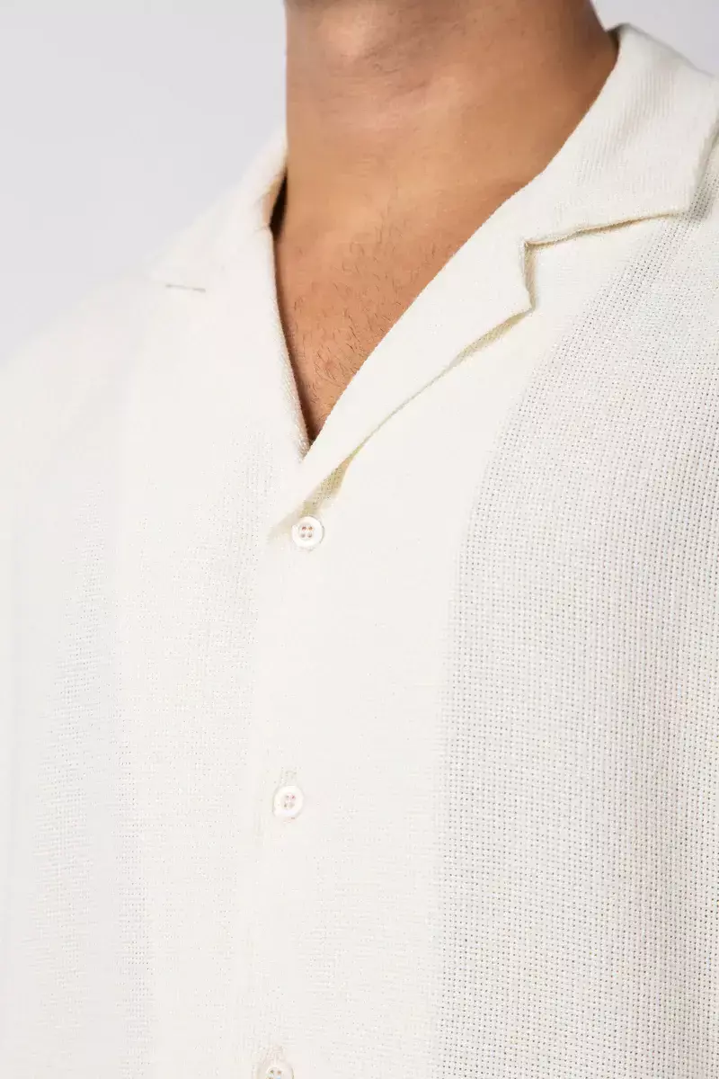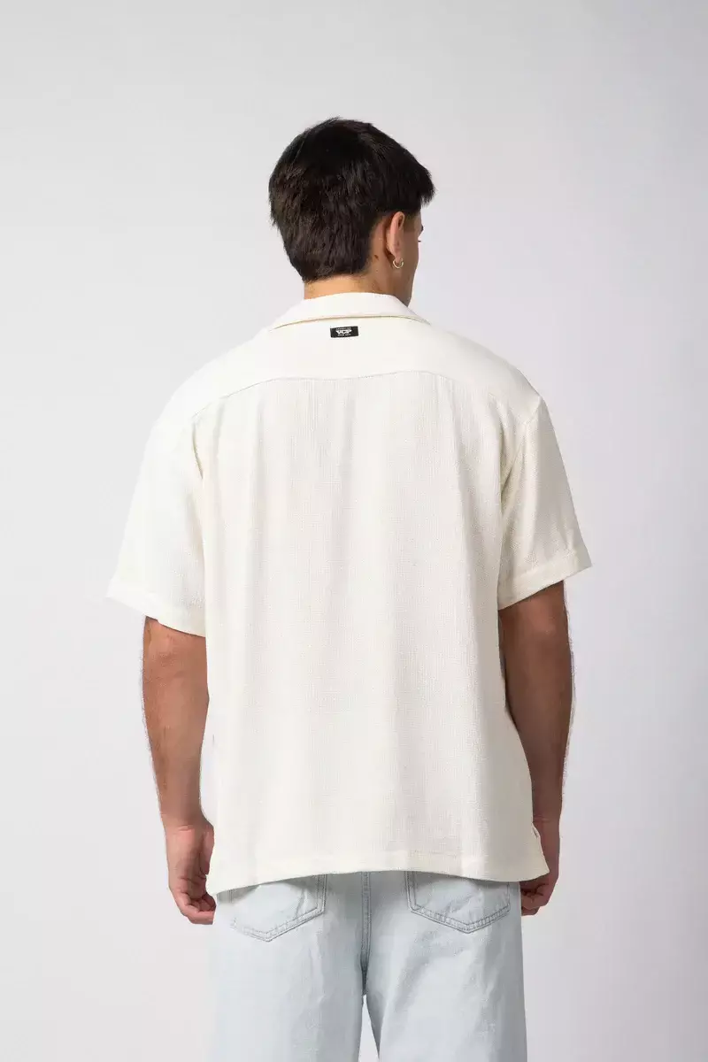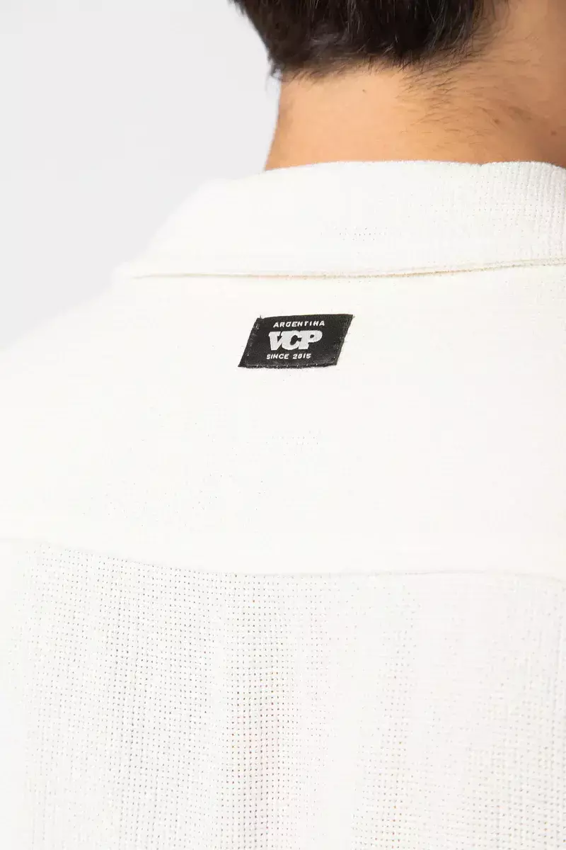 Camisa de lino entramado de manga corta , corte regular con botones personalizados a tono. Su composición es de 88 % Rayón y 12% Lino. Personalizada con etiqueta y grifas marcaria.