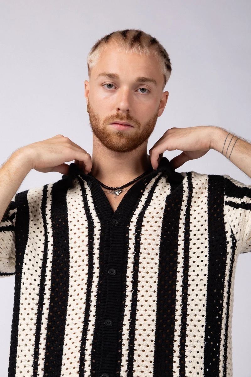 Camisa tejida manga corta. Calce Clasico. Tela: Crochet