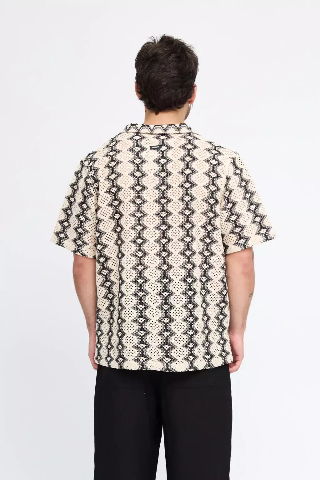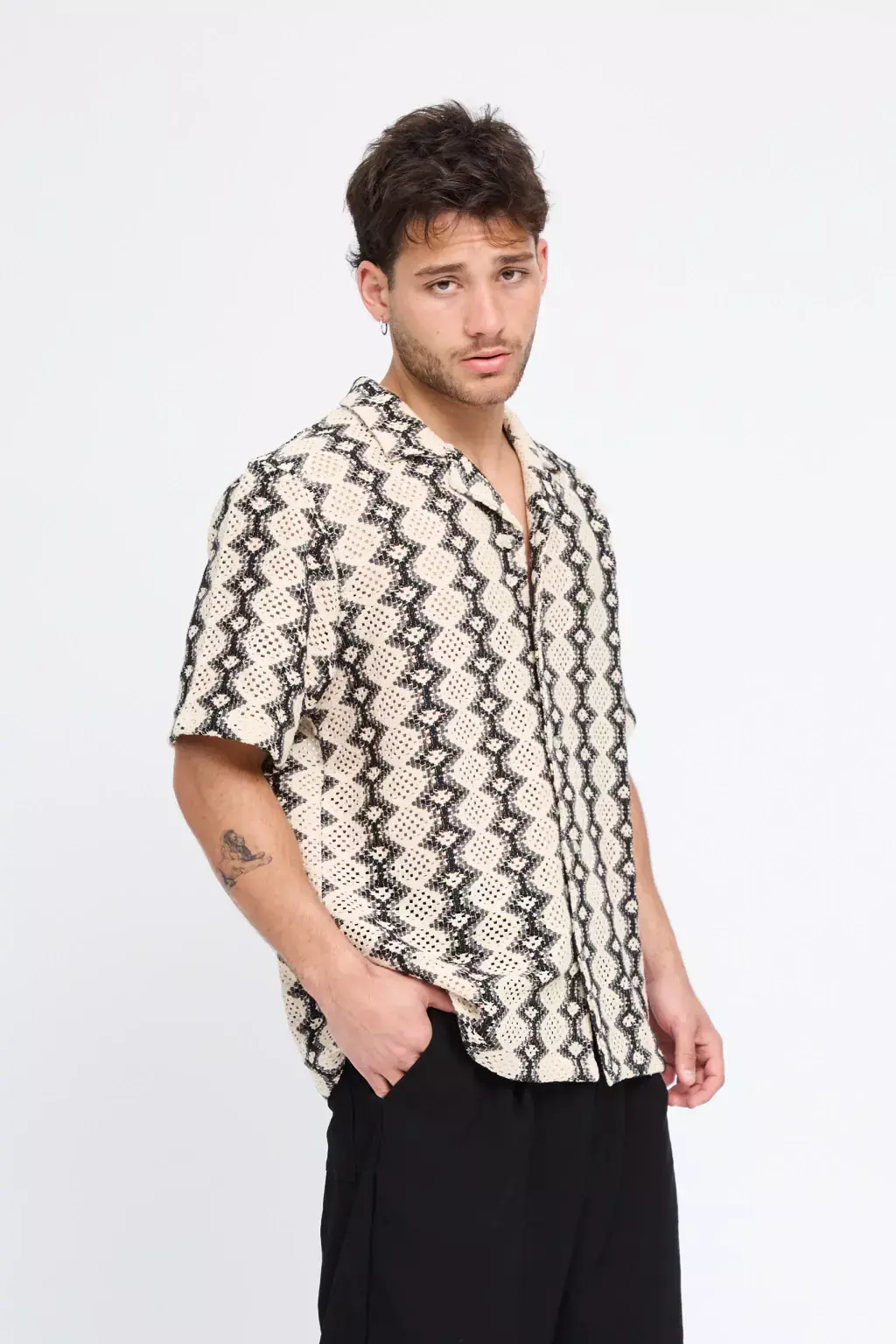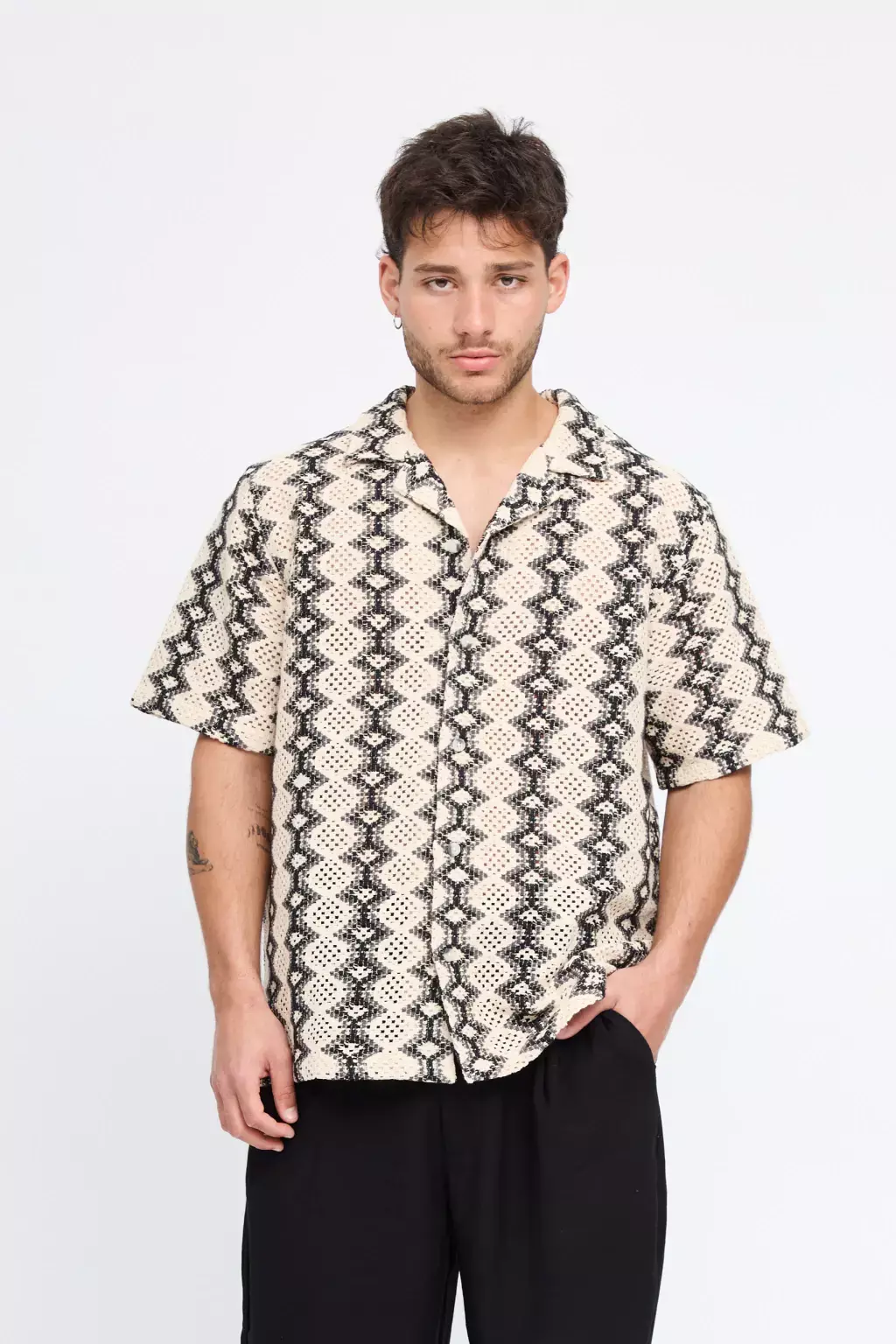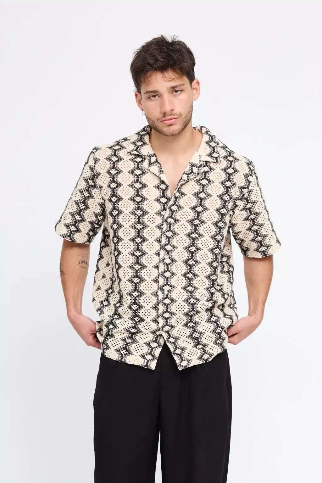 Camisa tejida de manga corta, calce regular. Confeccionada en 100% algodón, destaca por su diseño de rombos y terminaciones de calidad con botones y etiquetas personalizados a tono.