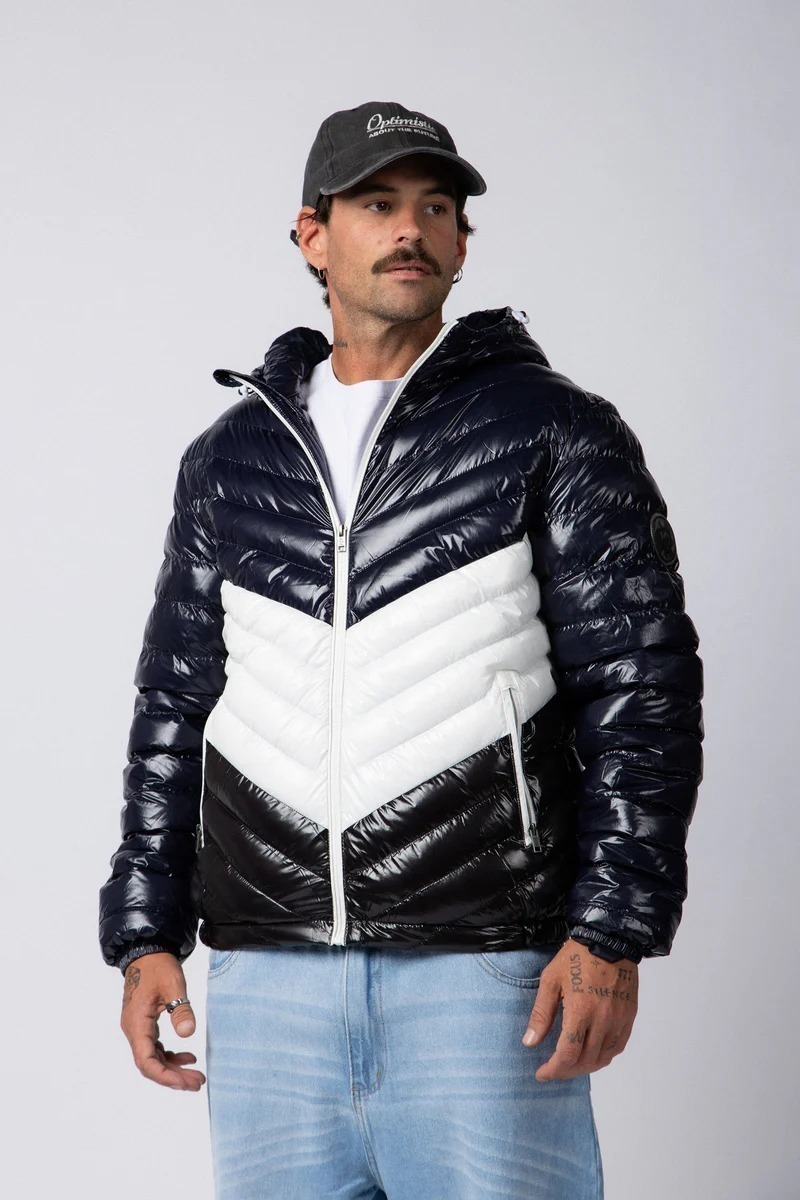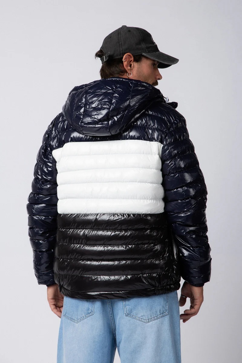 Campera tricolor de Fibra Ligera, con el interior y capucha de peluche. Cierres termosellados. Importada