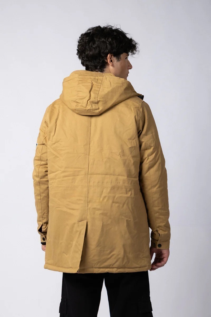 Parka pesada de gabardina, forrada en toda la parte interna. Seis bolsillos frontales y bolsillo en una de sus mangas. Tela Gabardina. Producto Importado