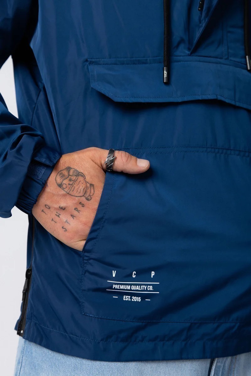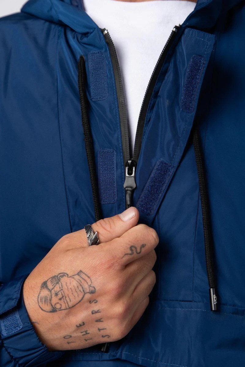 Campera ANORAK rompevientos con capucha. Bolsillo para pase de ski y puños con elástico y velcro para ajustarlos. Cierres termosellados en todos sus bolsillos y laterales.
