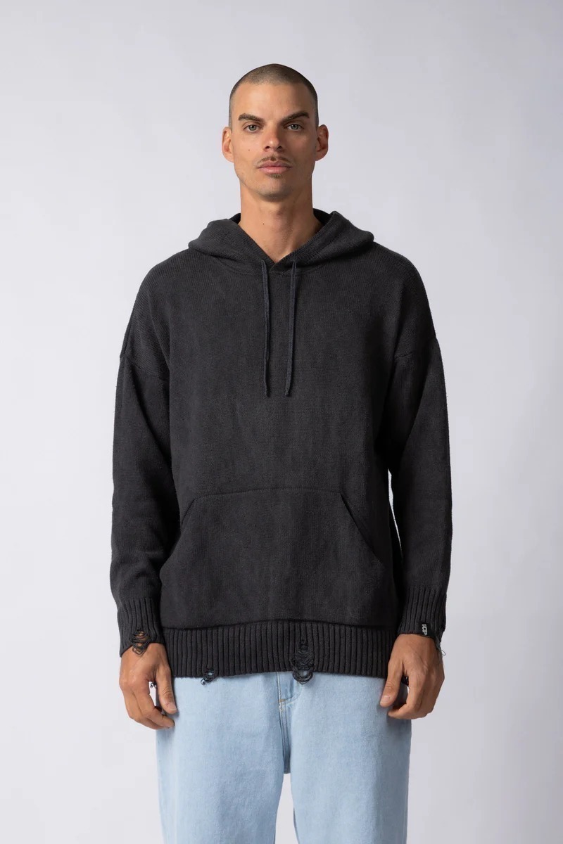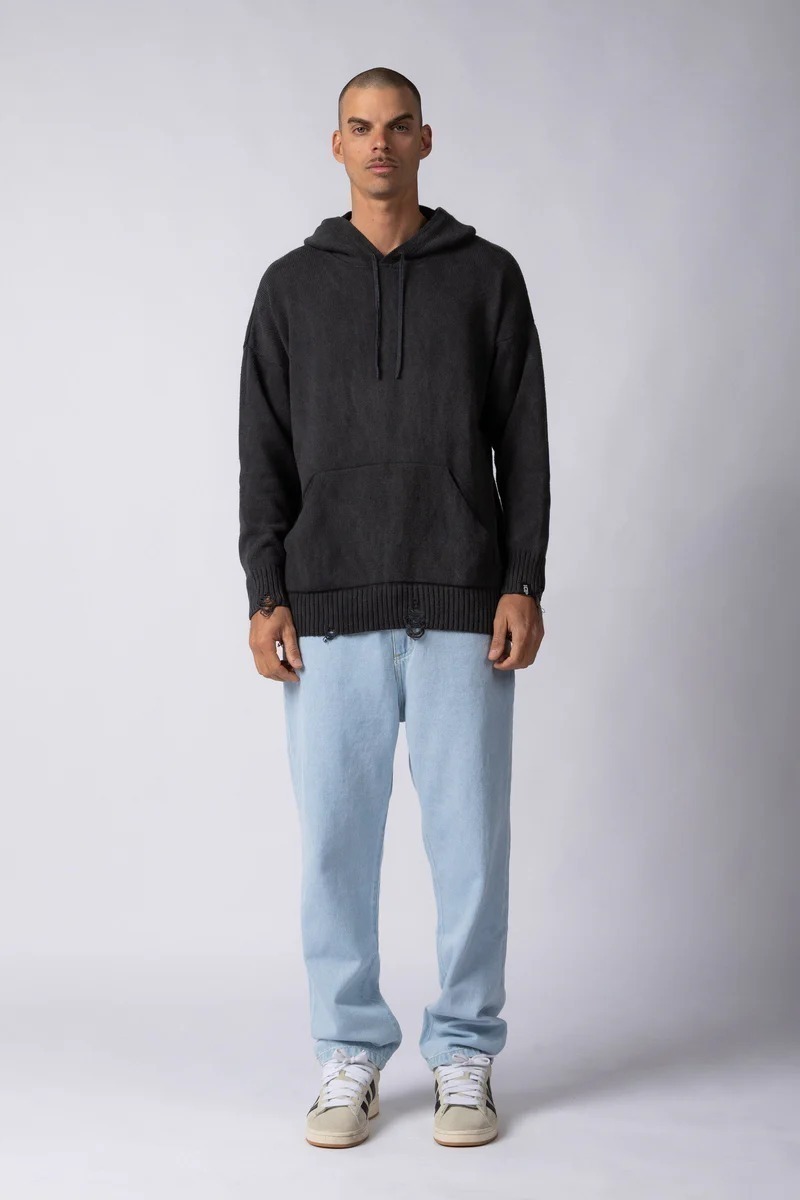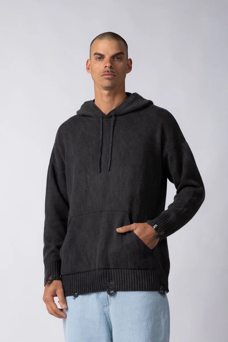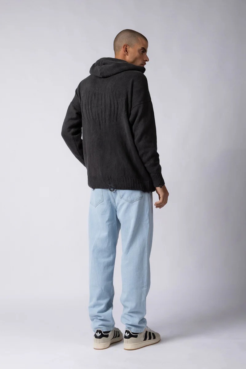 Sweater Canguro calce Oversize , tejido con punto jersey hilado de 100 % Algodón .La cintura y puños tiene un efecto de deshilachado y posee un proceso de desgaste Washed en toda la prenda. En su espalda tiene un detalle de arte tejida . Y además está personalizado con cuerito y grifa marcaria.